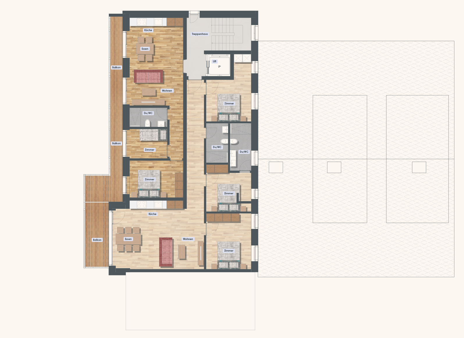 Für den ganzen Wohnpark wird eine Tiefgarage erstellt. Damit entsteht praktisch ein «autofreies» Wohnquartier. Der Baubeginn vom anspruchsvollen Neubauprojekt hat bereits im Frühjahr 2023 begonnen. Bei Interesse hinterlassen Sie uns doch eine kurze Meldung.